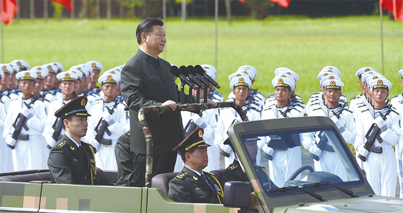 評論認為,習近平重視軍權,與中共的「槍桿子裡面出政權」,誰掌握了中共軍權誰就是中共「老大」有關。圖為習近平2017年6月30日在香港閱兵。(AFP)