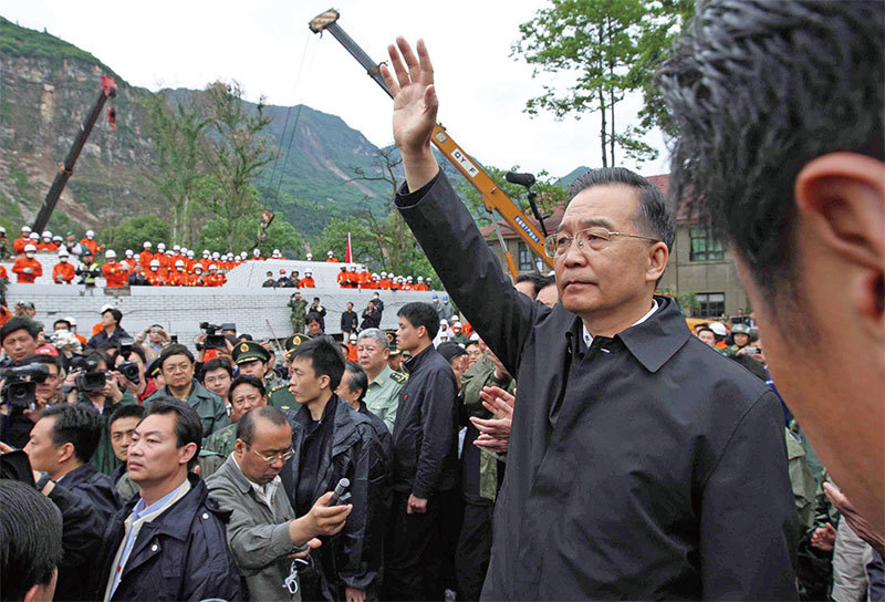 2008年汶川大地震後,時任總理溫家寶作為抗震總指揮,但軍方不聽溫的調度,而是聽退休多年的「軍委首長」江澤民的指揮。(AFP)