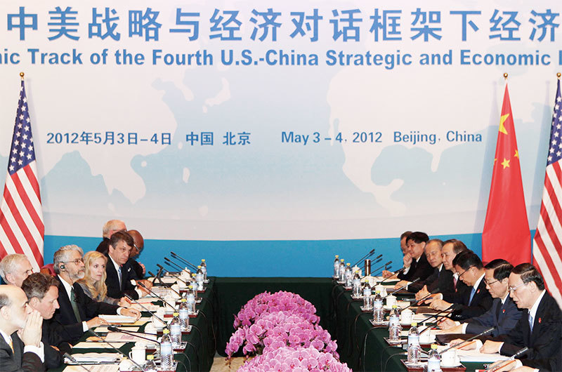 王岐山(右一)任職國務院副總理期間,分管金融、商貿工作,面對國際金融危機、出口急挫和人民幣升值壓力,在中美戰略與經濟對話中,領銜經濟對話。(AFP)