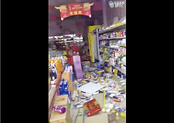 報導中的視頻顯示,一個店鋪的天花板掉下來了,現場有人說:「太恐怖了。」