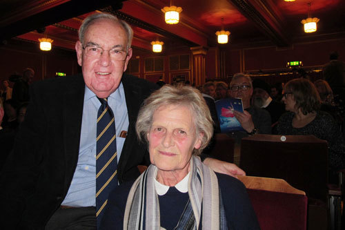 2月16日,世界級作曲家Malcolm Ironton先生和太太Itsuko Sugawara一同觀看了神韻在倫敦的演出。(攝影/麥蕾)