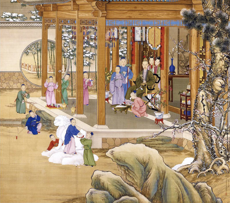 清朝姚文翰〈歲朝歡慶圖〉。(臺北國立故宮博物院)