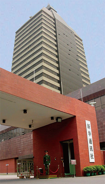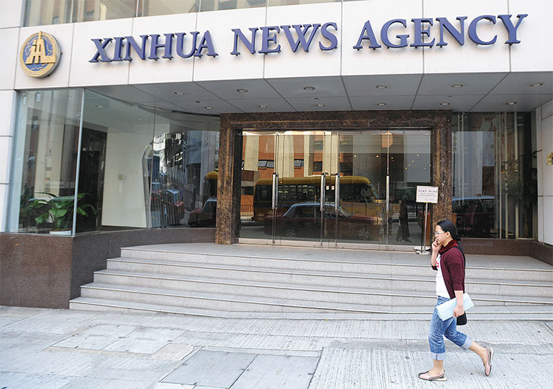 新華社英文版、新華視點同時突出報導修憲中的修改中共國家主席任期,重點炒作以激起民眾對當局的輿論聲討。圖為新華社香港分社。(AFP)