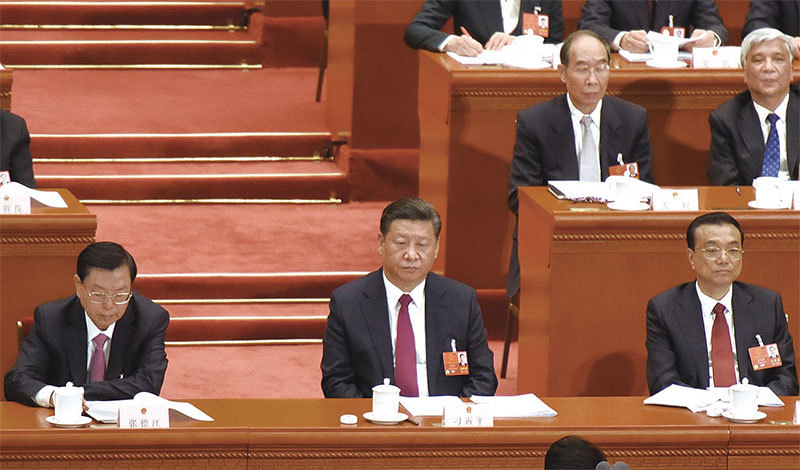 習近平要修改憲法,需通過人大來進行表決,人大委員長張德江(左)就是修憲的最大阻力。(Getty Images)