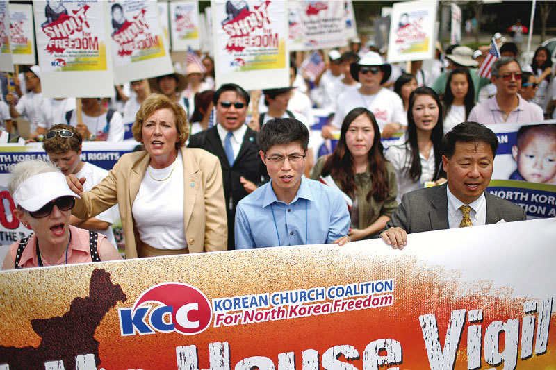 有消息指金正恩派出2000名潛伏間諜,假裝成脫北者進入美國,他們只要接到指示就會從事破壞活動。圖為2012年人權團體在華盛頓舉行的北韓人權遊行活動。(Getty Images)