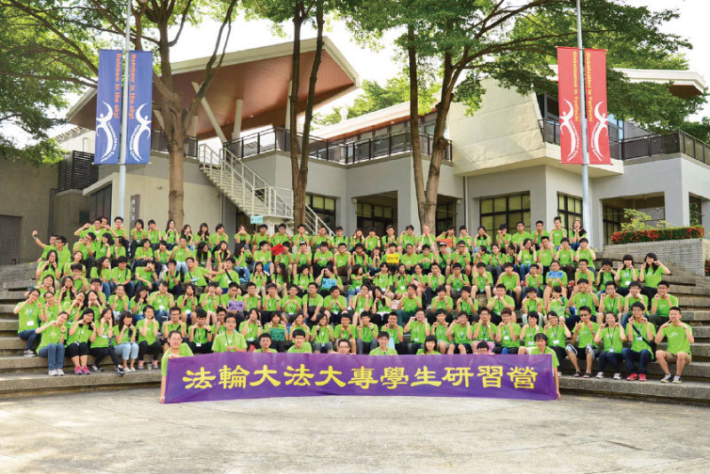 謝岡典積極地參與全臺大專院校的法輪功學員自發主辦的「真善忍學習營」及「青年學子營」。(謝岡典提供)
