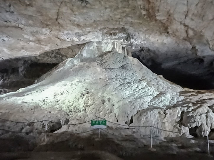 洞內富士:因為外觀像富士山而命名,是洞內最大石筍。在秋芳洞內2釐米石筍從下往上長成需要大約500年。