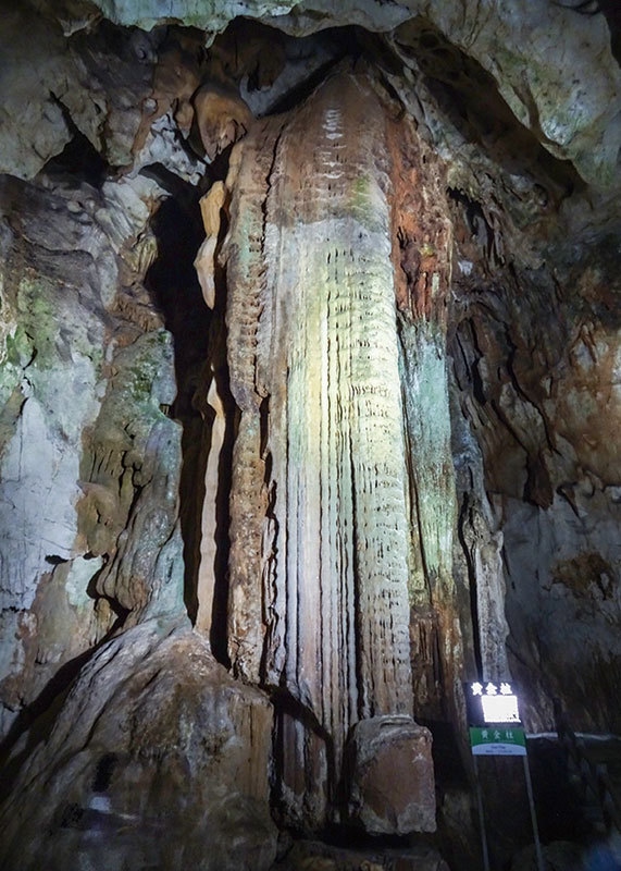 黃金柱:秋芳洞第一景點,入洞門票相片就是黃金柱,為巨大直立石灰柱,高15公尺,寬4公尺。
