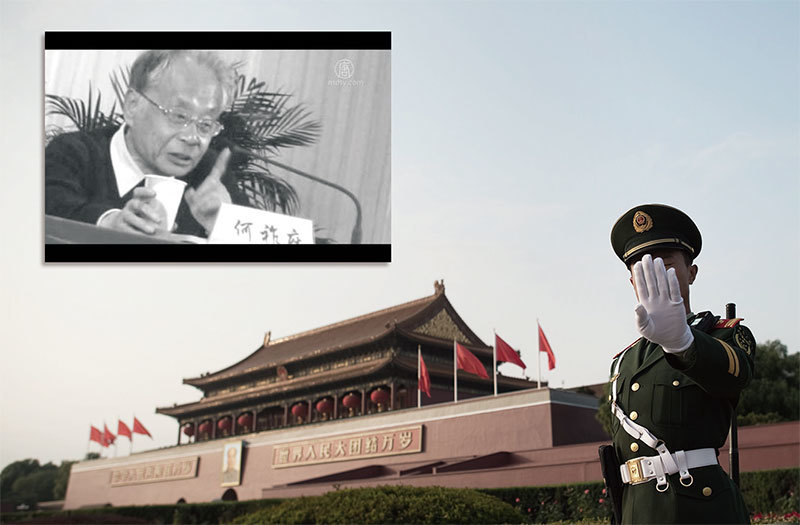 中共科痞何祚庥是江派的親信,他此時跳出來反對刪除國家主席任期限制,這也顯示習江博弈仍很激烈。(新紀元合成圖)