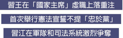誓詞強調「忠於祖國、忠於人民」,而未提「忠於黨」;這與習強化國家權力的動作相呼應,令人聯想。