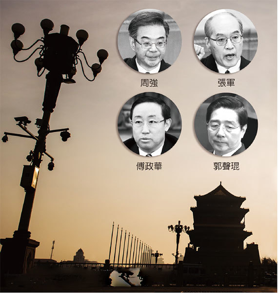 目前,政法系統其中四大要職仍被江派官員占據。兩會後,政法系統仍將是習江博弈的焦點領域。(新紀元合成圖)