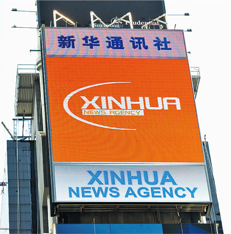 中共滲透美國媒體的宣傳方式多種多樣,如花大錢讓中共國有媒體大舉進駐美國。圖為2011年新華社租用紐約時代廣場的電子螢幕進行推廣宣傳。(Getty Images)