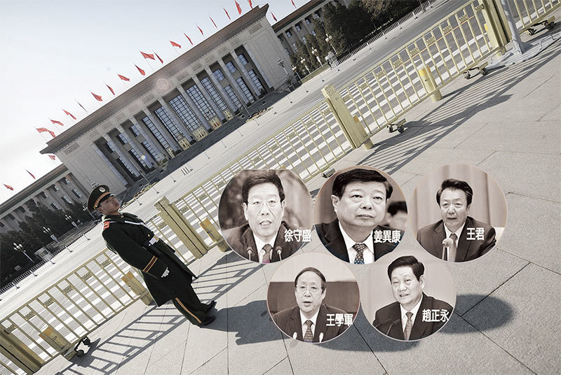5名卸任省委書記徐守盛、姜異康、王君、王學軍、趙正永異常落選新一屆全國人大、政協名單中,其處境不妙的跡象明顯。(新紀元合成圖)