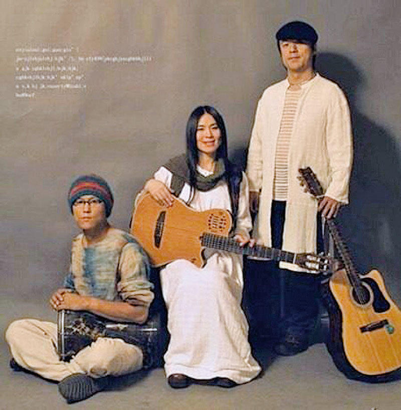 于宙(左)與黎強、小娟夫婦組建了民謠樂隊。(大紀元)