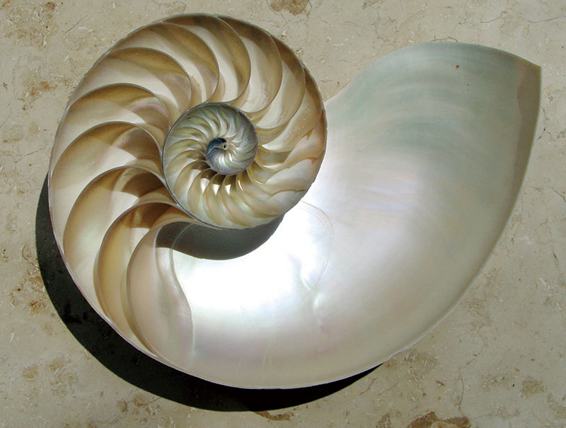 鸚鵡螺貝殼左旋有序,且具黃金比例的幾何學特徵。(Chris 73/維基百科)