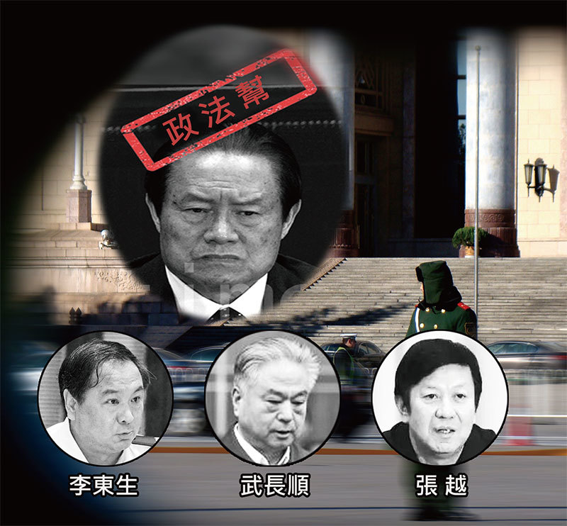 周永康是江澤民集團「政法幫」與「石油幫」的代表,其他落馬的政法幫高官還有公安部副部長李東生、天津市公安局長武長順、河北政法委書記張越等人。(新紀元合成圖)