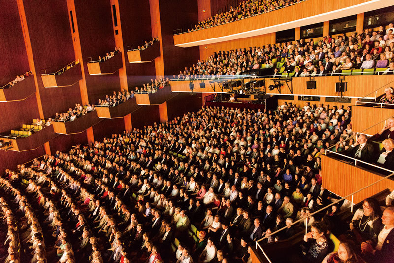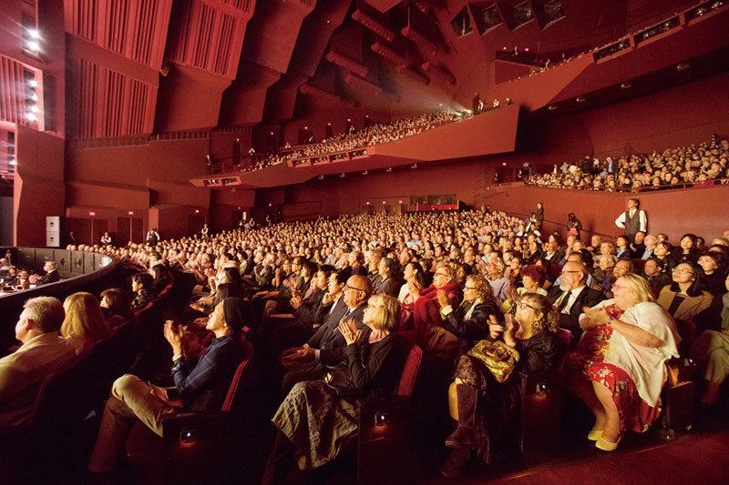 4月7日晚,神韻世界藝術團在南加州柯斯塔梅莎市橙縣藝術中心表演時的爆滿盛況。(攝影/季媛)