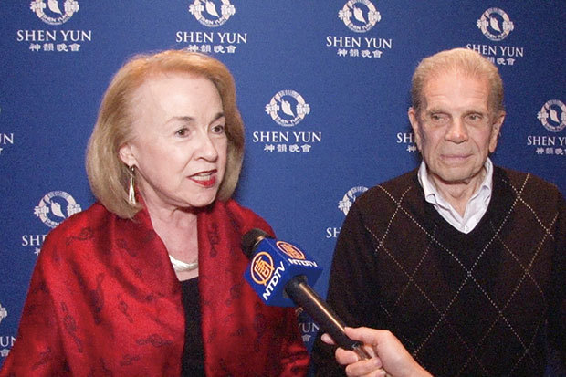 資深製作人鮑伯.羅素(Bob Russell)和太太凱迪.羅素(Kathy Russell)觀看了4月6日晚神韻在亞特蘭大的演出。(新唐人電視臺)