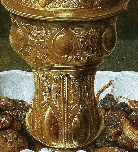 克拉拉.琵特斯(Clara Peeters)〈有花與銀器的靜物〉銀器局部。(公有領域)