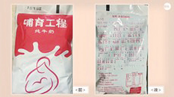官方展示了首批派發的牛奶,每個包裝箱都附有宣傳單張,箱體和牛奶袋正面印有「哺育工程」標語,背後印有中共傳統的宣傳歌曲〈黨啊 親愛的媽媽〉。