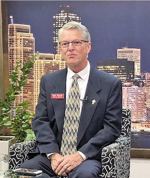 4月13日,正在角逐加州聯邦參議員席位的共和黨參選人保羅.泰勒(Paul Taylor)接受新唐人專訪。(大紀元)