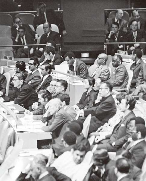 1971年中共加入聯合國,「繼承」中華民國的聯合國常任理事國席位,並「驅逐」臺灣的中華民國。圖為1971年11月15日,中共代表團首次代表中國出席聯合國大會。(AFP)
