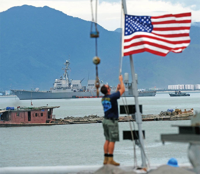 2011年中國軍方提出南中國海是中國核心利益,導致當時中美關係在南海問題出現第一個裂痕。圖為2011年7月15日,越南中部港都峴港的美國海軍。(AFP)