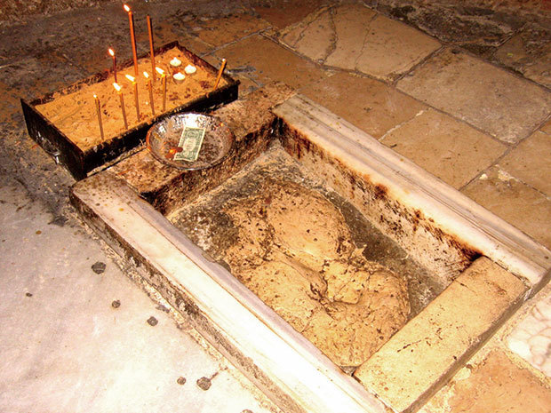 耶穌升天小堂裡的「升天石」,據說上面還有耶穌升天時留下的右腳腳印。(adriatikus/Wikimedia Commons)
