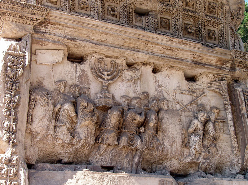 提圖斯凱旋門的細部雕刻,顯示來自耶路撒冷聖殿的戰利品。(公有領域)