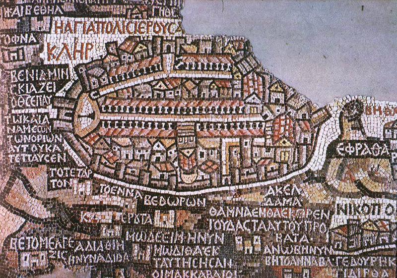 哈德良皇帝所建之城Aelia Capitolina,馬達巴馬賽克,西元6世紀。(公有領域)