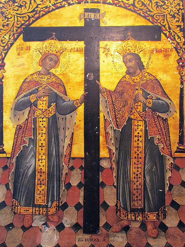 君士坦丁大帝與其母聖海倫納,相傳海倫納找到耶穌受刑的真十字架。(Gmihail/ Serbian Wikipedia)