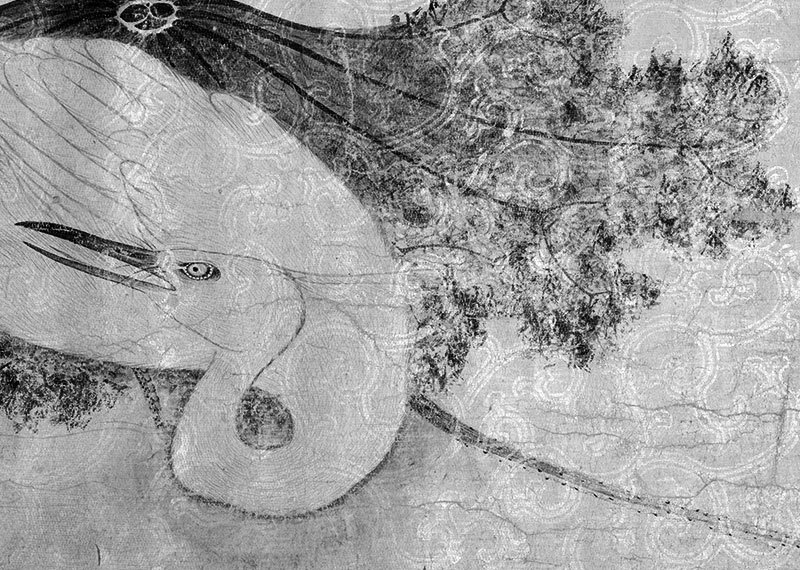 「砑花」技法乃是利用雕版在紙上研壓出凹凸紋飾。「花箋」泛指經過裝飾的箋紙。圖為宋徽宗〈池塘秋晚圖〉經過「砑花」技法的花箋畫紙(局部)。(臺北故宮博物院藏)