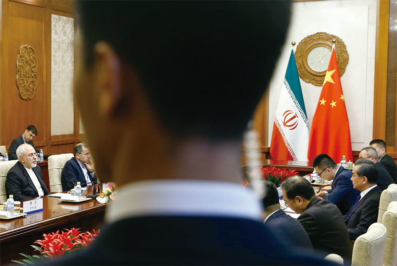 川普5月9日宣布退出伊朗核協議,中共便急不可耐的進軍伊朗。圖為5月13日王毅(右)在北京與伊朗外長穆罕默德扎里夫(左)舉行會談。(AFP)