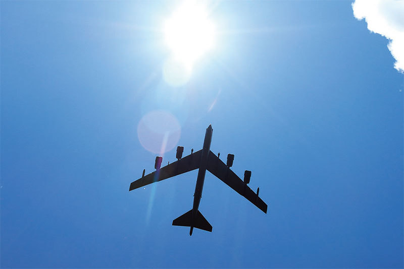 面對中共挑釁,40天內美軍B-52戰略轟炸機四次飛抵南海東沙島。(AFP)