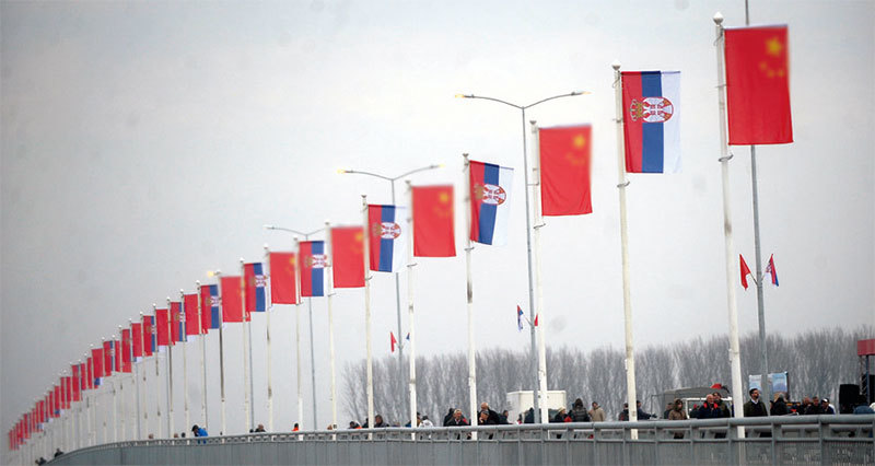 過去十年,中共在歐洲投資逾3180億美元,主要投資南歐及東歐的基礎建設及西歐國家的高科技領域。圖為歐洲首座「中國造」大橋:塞爾維亞卜平大橋2014年12月18日通車。(AFP)