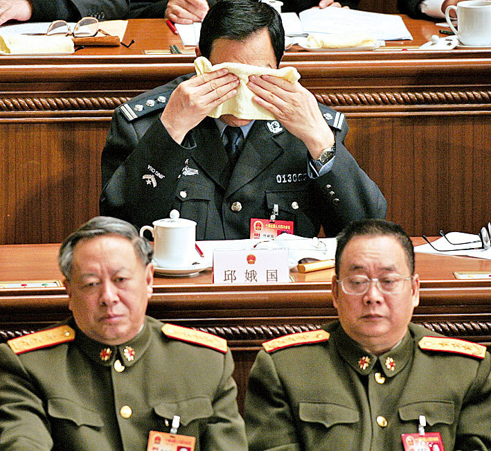 1999年江澤民發動鎮壓法輪功,成立遍及全國的「610辦公室」專職迫害法輪功。李繼耐(左)在任總政治部主任期間,兼任全軍「610辦公室」主任,被「追查國際」列入追查名單。(AFP)