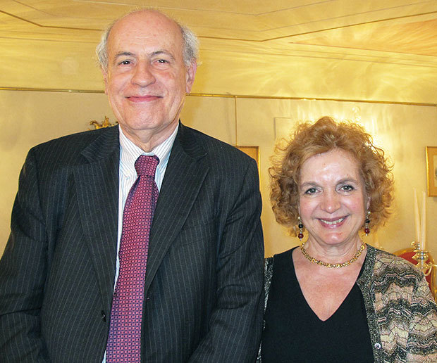 意大利著名歷史學家、前文化部長Claudio Strinati和夫人觀看了3月19日晚上神韻在羅馬的演出。(攝影/麥蕾)