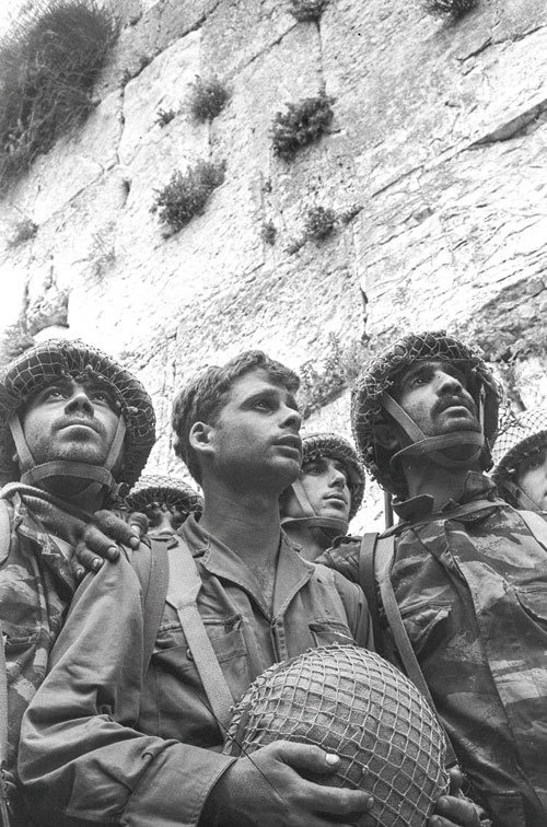 1967年鄰近四個阿拉伯國家發動第三度攻擊,但僅短短六日,就被兵力較少的以色列全數擊退。這場被稱為第三次中東戰爭(六日戰爭)的戰役,因為一方以少擊多卻能迅速獲得壓倒性的勝利,成為20世紀軍事史上最具傳奇的一場戰事。以色列在這場戰爭中,將東半部的耶路撒冷──兩千年前的都城,重新納入自己的版圖。這對所有的猶太人來說,是歷史上重要的一刻,當時的國防部長跪在西牆前,哭著說道:「我們終於回到聖地的至聖所,永遠不再離開了。」