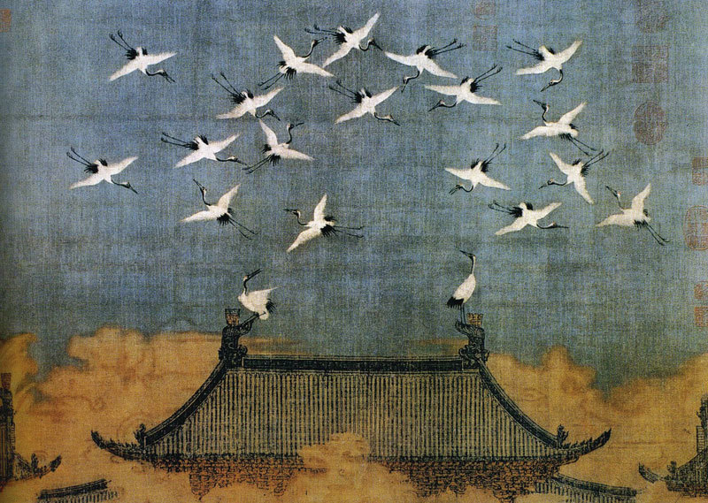 瑞鶴來儀。北宋趙佶〈瑞鶴圖〉。(公有領域)