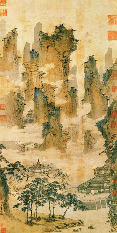 明嘉靖二十九年(公元1550年),仇英〈仙山樓閣圖〉。(公有領域)