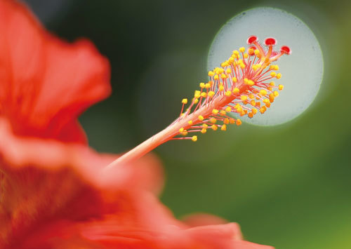 木槿花瓣五出,屬下的品種繁多,顏色有深紅、粉紅、藍的、紫的、白的都有,朵朵明豔煥發。紅花朱槿,更是夏天的代言人,中國嶺南人稱大紅花,明末屈大均形容她是美人的衣裳:「受色朱天好,長含灼灼暉;移從君子國,襲作美人衣。」(明末淸初屈大均〈木槿 其一〉)。