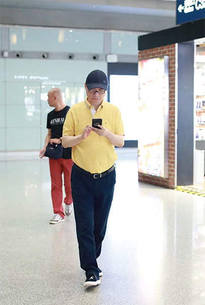 有評論說,崔馮之爭的根源是知識產權問題。也有人說,崔永元是藉炒作《手機2》突顯自己以便商業謀利。圖為7月1日崔永元現身北京機場低頭玩手機。(大紀元資料室)
