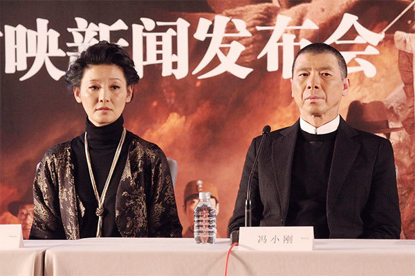 崔永元爆料說,馮小剛和徐帆雖以一種「模範夫妻」的方式露面,其實兩人都很亂。圖為2012年11月25日馮小剛、徐帆出席電影《一九四二》上映記者會。(AFP)