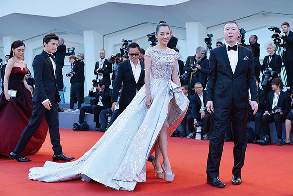 2015年9月12日馮小剛攜許晴出席第72屆威尼斯電影節閉幕日。(AFP)