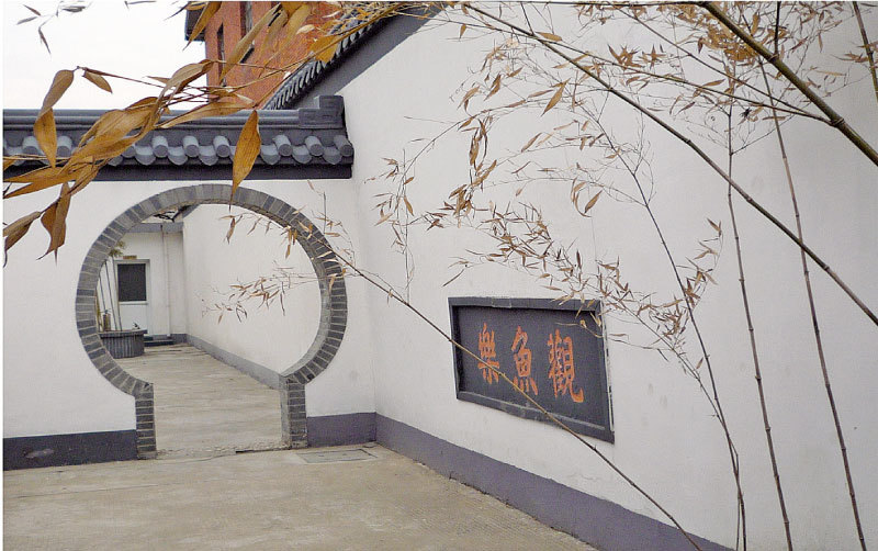 卞寶書長孫卞斌孫在卞府「小松隱閣」花園題詞「觀魚樂」,尚留存在揚州廣陵路消防隊院內的牆壁上。(卞世傳提供)