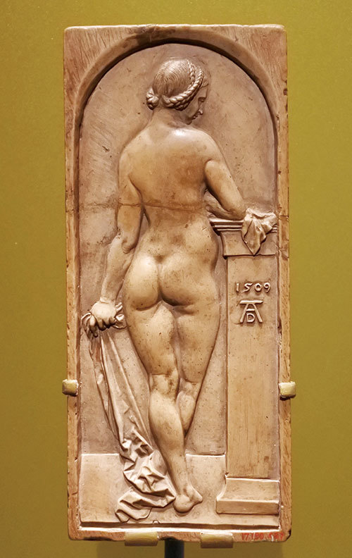 一塊後人仿製亞伯特杜勒素描的石頭浮雕〈背著面的女體〉(Female nude seen from behind,高12公分)因上頭鐫刻著杜勒的簽名,值9頭牛。這與當時杜勒在藝術上的成就聲名有關。儘管這件作品並不是杜勒做的,而是在他過世後不久,藝匠拿他的素描稿複製完成的。