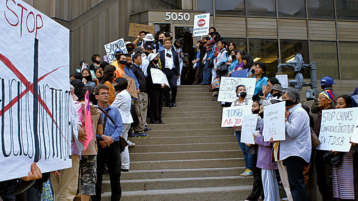 加拿大麥克馬斯特大學在2013年關閉孔子學院,創下全球首例。圖為要求關閉孔子學院的民眾在現場抗議。(秋旻/大紀元)