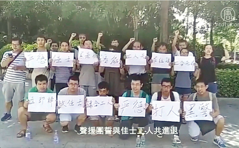 中國深圳佳士工人組建工會被捕,相繼獲得北大、人大等高校才子發聲聲援工人。(視頻擷圖)