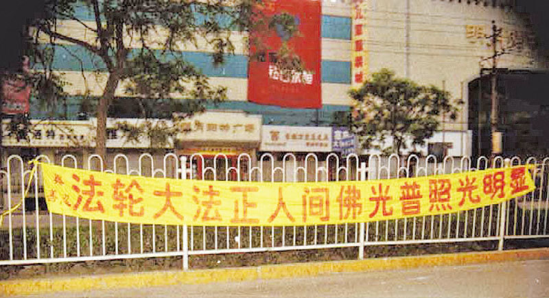 四位姥姥早晨起來,沿著公路掛法輪功真相條幅,越掛越起勁,一直沿著路掛到了鄉政府,她們還在掛。那天正是周一早晨八點多,被新來的鄉黨委書記上班看到了,通知派出所來抓人。