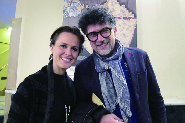 4月19日,著名作曲家Marco Falagiani和妻子Valentina Galasso觀看了神韻在意大利佛羅倫薩的演出。(攝影/麥蕾)